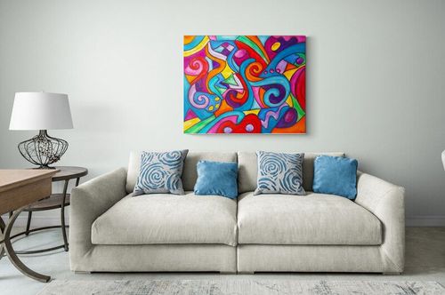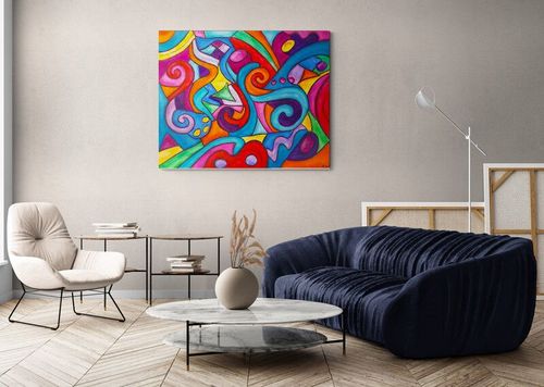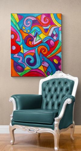 FESTIVAL ,un carnaval aux couleurs vibrantes … Peinture acrylique en relief, sur toile , Avec 3 couches de vernis pour ne pas prendre une ride … Les bords sont peints, ne nécessite pas un encadrement et un système d’accrochage est mis au dos de l’œuvre, pour ne mettre qu’un clou au mur. Peut se mettre à l ‘horizontal ou vertical. La toile est signée et contresignée au dos, livrée avec son certificat d’authenticité.