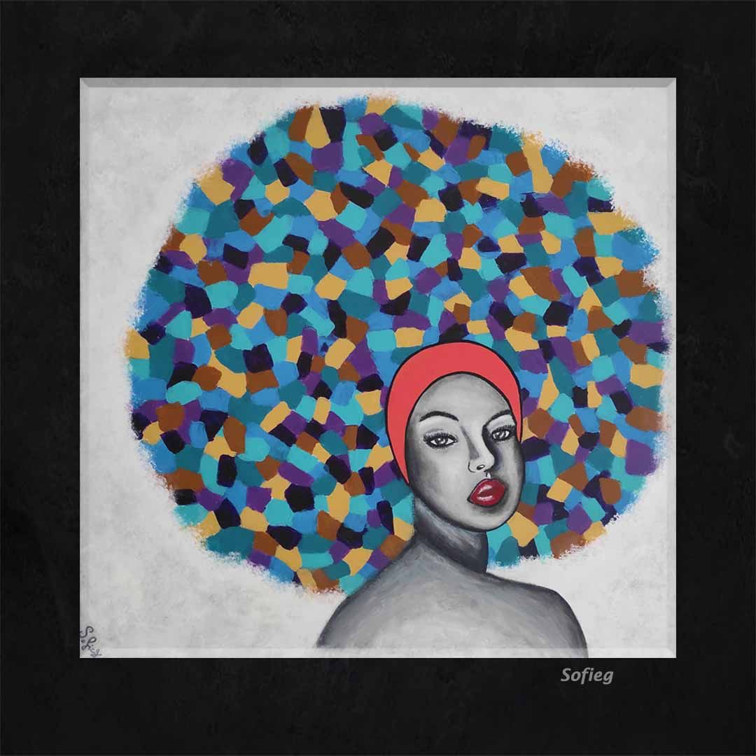 PÉNÉLOPE se proméne dans plusieurs endroits bientôt sur votre mur ….😉 Œuvre originale et unique peinte à la main par Sofieg : Peinture acrylique , sur toile montée sur châssis. Avec 3 couches de vernis pour ne pas prendre une ride … Les bords sont peints, ne nécessite pas un encadrement et un système d’accrochage est mis au dos de l’œuvre, pour ne mettre qu’un clou au mur. Se met à l ‘horizontal . Mes Couleurs : Blanc, Noir, Ocre, Bleu, Violet.