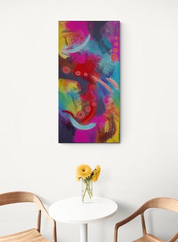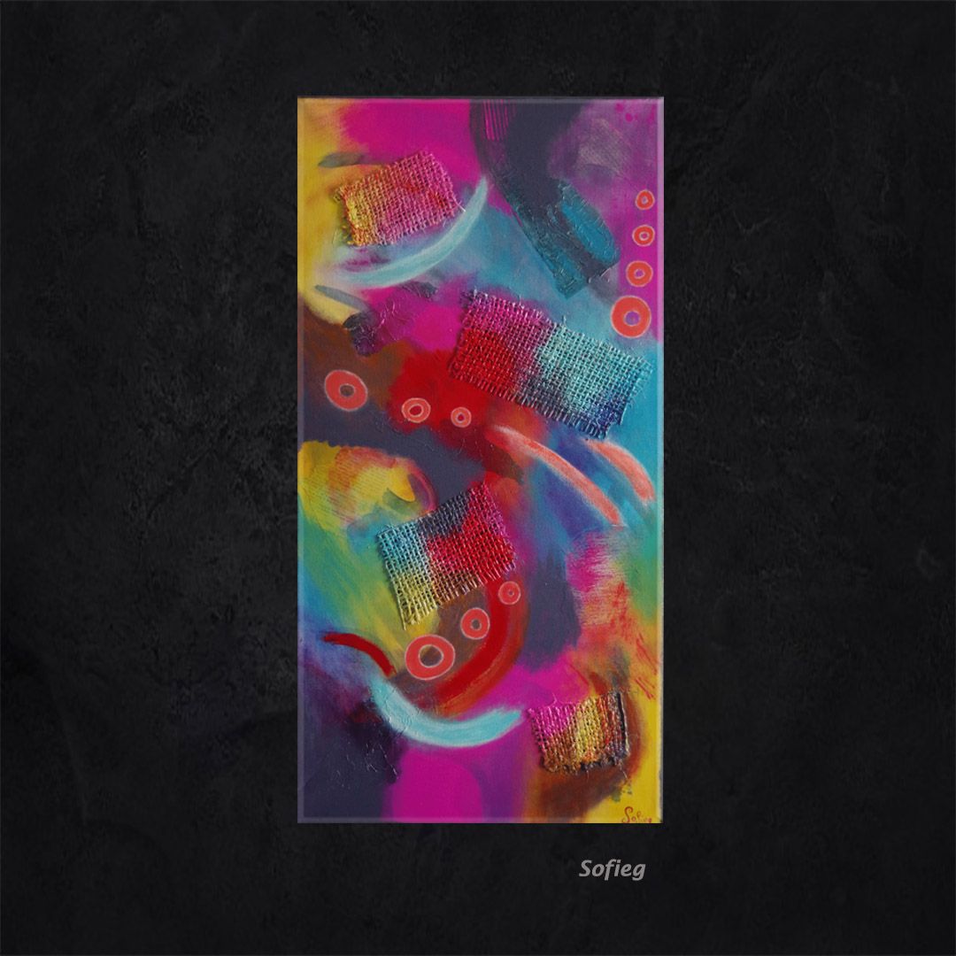 Plan sur la COMÉTE … . 😉🎨 Œuvre originale et unique peinte à la main par Sofieg : Peinture acrylique en relief, et collage sur toile montée sur châssis, Multi Couleurs. Avec 3 couches de vernis pour ne pas prendre une ride … Les bords sont peints, ne nécessite pas un encadrement et un système d’accrochage est mis au dos de l’œuvre, pour ne mettre qu’un clou au mur. Format : vertical. La toile est signée et contresignée au dos, livrée avec son certificat d’authenticité. Les Couleurs : dominance de Bleu, Rose, Jaune.