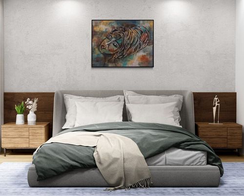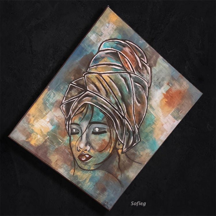 Œuvre originale et unique peinte à la main par Sofieg : KIMI l’indonésienne ,rêve ……😉🎨 Je suis KIMI, peinte à l’acrylique, avec pinceaux et couteaux sur toile montée sur châssis. J’ai 3 couches de vernis pour ne pas prendre une ride … Mes bords sont peints, ne nécessite pas un encadrement et un système d’accrochage est mis dans mon dos . Je me place à l’horizontale ou en DIAGONALE. Je suis signée et contresignée au dos, et on me livre avec mon certificat d’authenticité. Mes Couleurs : Bleu Turquoise, Bleu Marine, Ocre, Terre de Sienne, Noir, Blanc.