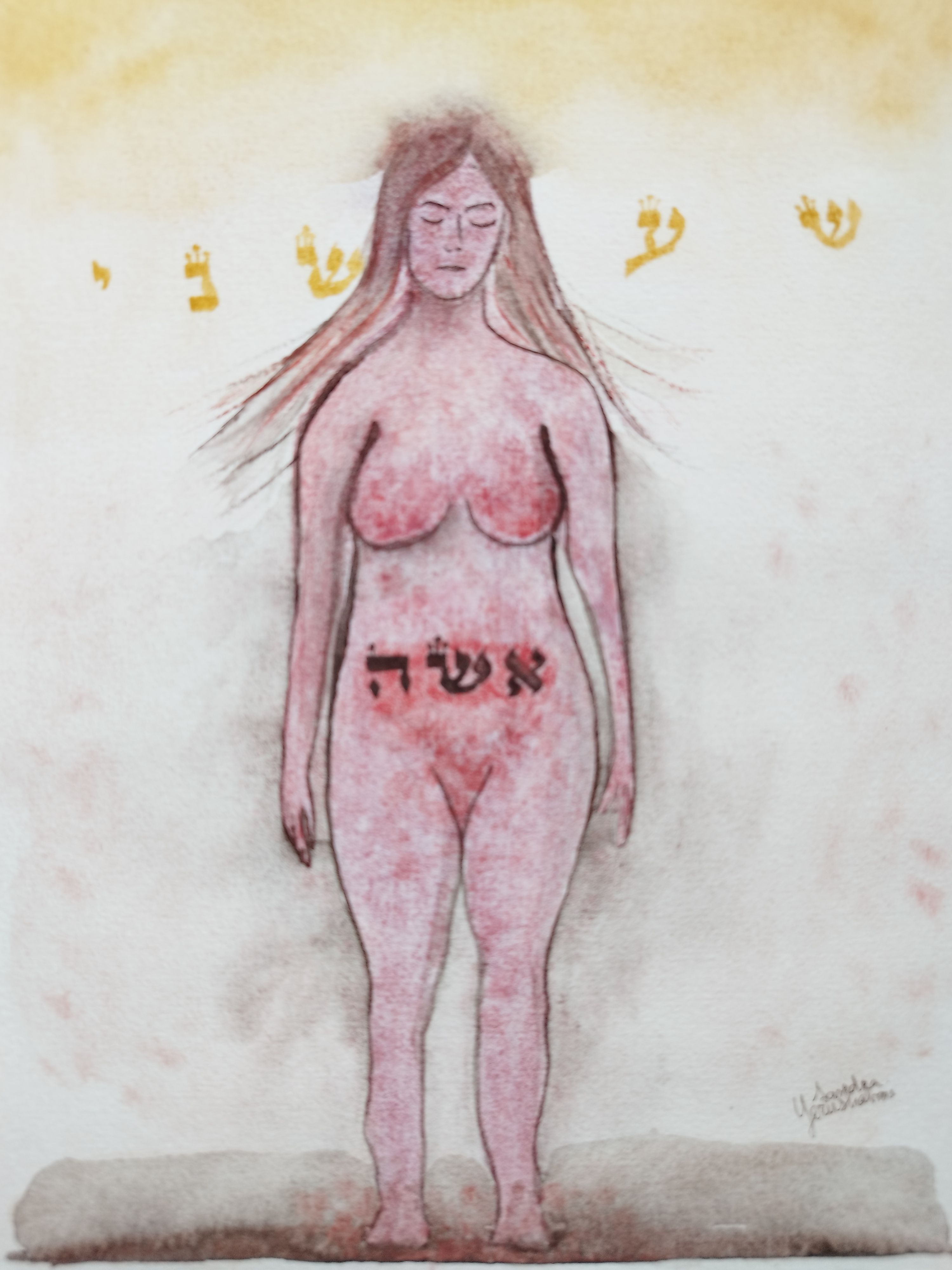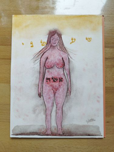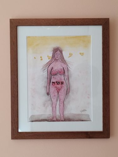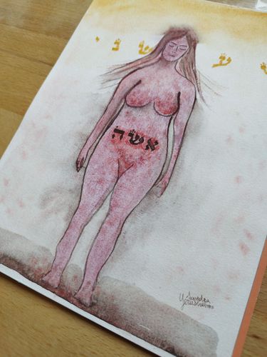 Une femme, les pieds ancrés dans le sol, connectée au Ciel, en pleine acceptation d’elle-même et de son corps. Ces mots qui n’existent ensemble dans aucune prière de la tradition juive : “Béni sois Tu qui m’a faite femme - Barouh Ata SheAssani Isha”.