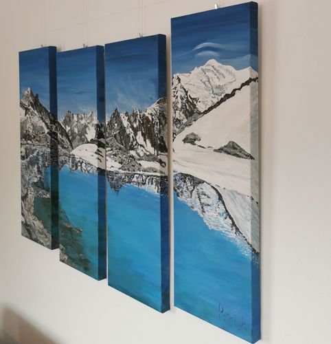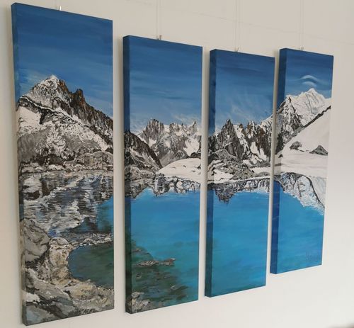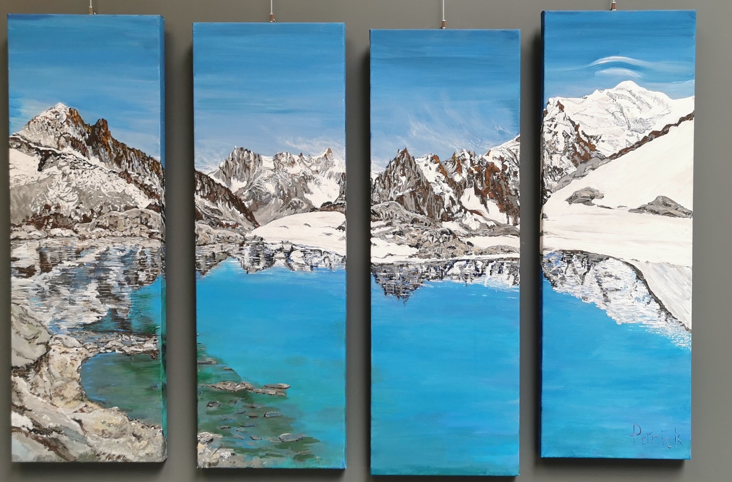 Quadriptyque :Le Lac Blanc (chamonix) Peinture sur toiles 31×90 x4
