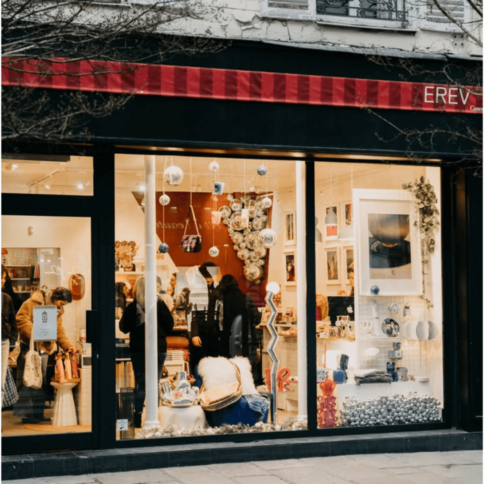 Erev Concept Store (anciennement connu sous le nom été85) propose une sélection colorée, moderne et audacieuse d'objets de décoration, pièces Vintage, bijoux et créations contemporaines. L'espace intègre également un mur galerie, où un.e artiste expose tous les trois mois photographies ou illustrations.